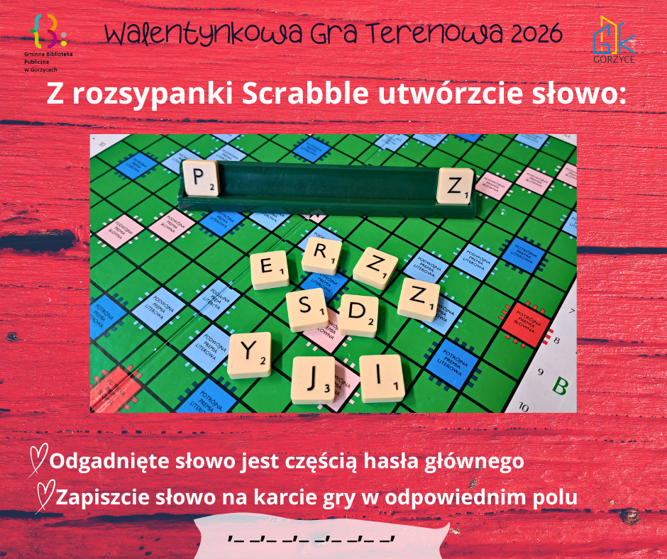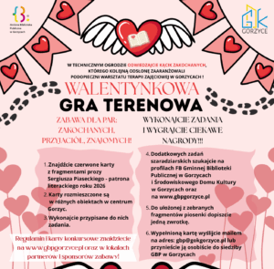 10 lutego 2026 / Last updated : 10 lutego 2026 Bibliotekarz Aktualności WALENTYNKOWA GRA TERENOWA 2026 – ZADANIE SZARADZIARSKIE