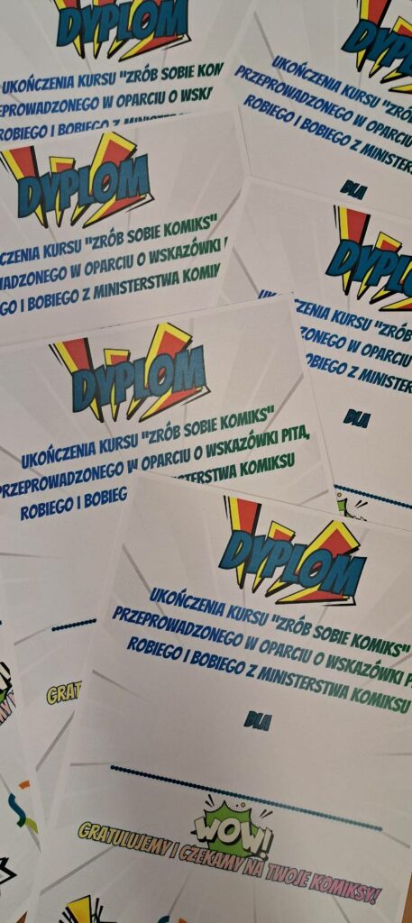 Dziękujemy serdecznie dzieciom za wspólnie spędzony czas pełen inspiracji i pasji. Wspaniale było móc „zanurzyć się” w gąszczu pięknych kadrów, podziwiać kreskę, z której powstał Superman czy powspominać czas, kiedy w Polsce królował „Tytus, Romek i A’Tomek”.